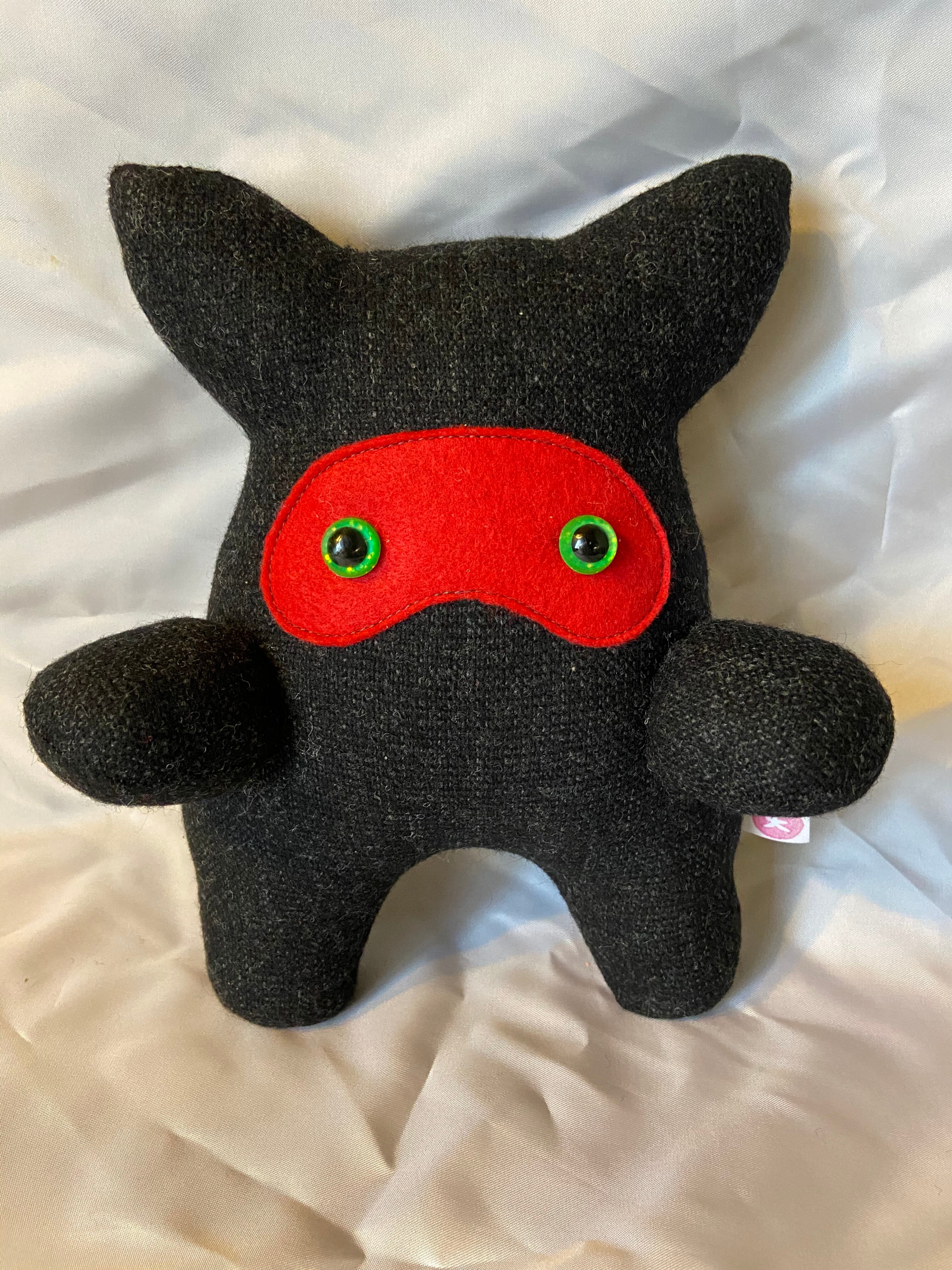 なんとなくにわかせんぺいのお面に似てるヒバゴンちゃんです。のぺっ、っとしています。しかしそこがかわいいポイントですね、、