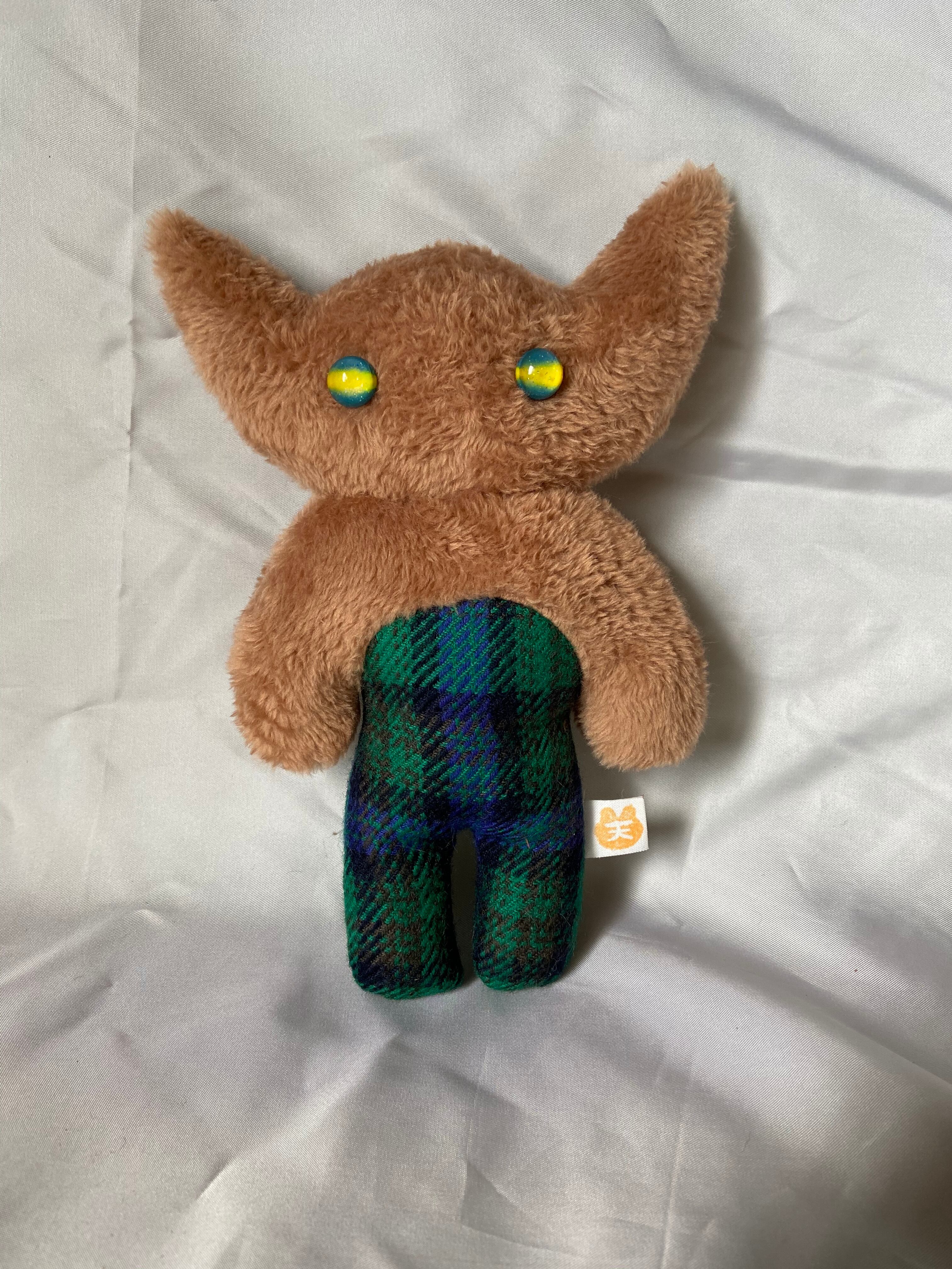 人気の二本ツノのぬいちゃんです!いつもより横幅広く作ってみました。チェックのズボンがおしゃれですね。おススメです!