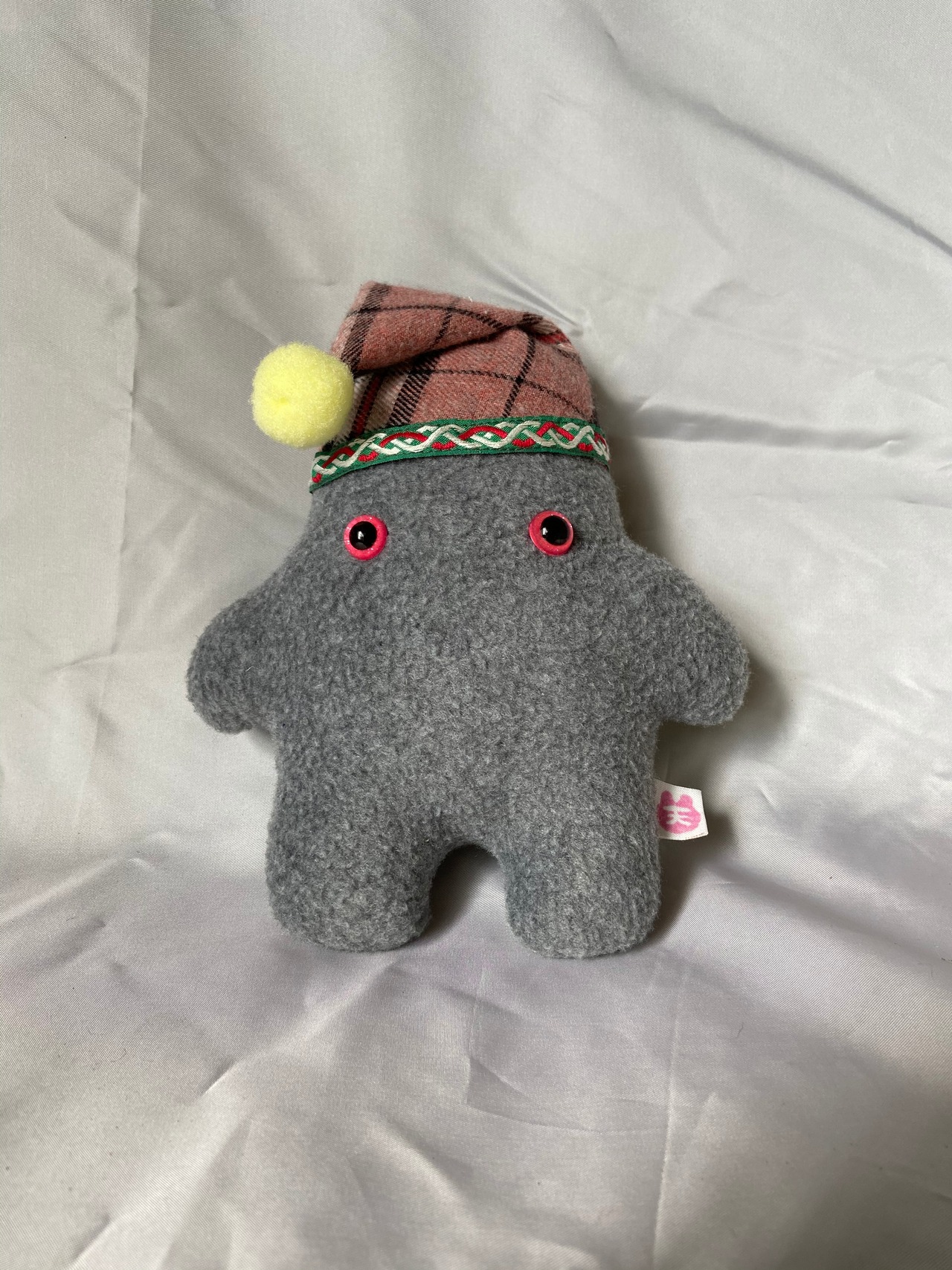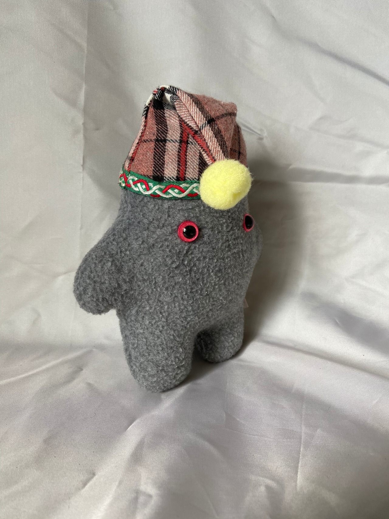 秋っぽい色合いのパーティー帽子のぬいです。シュッとした見た目ですね。お洒落な帽子に注目して下さい!