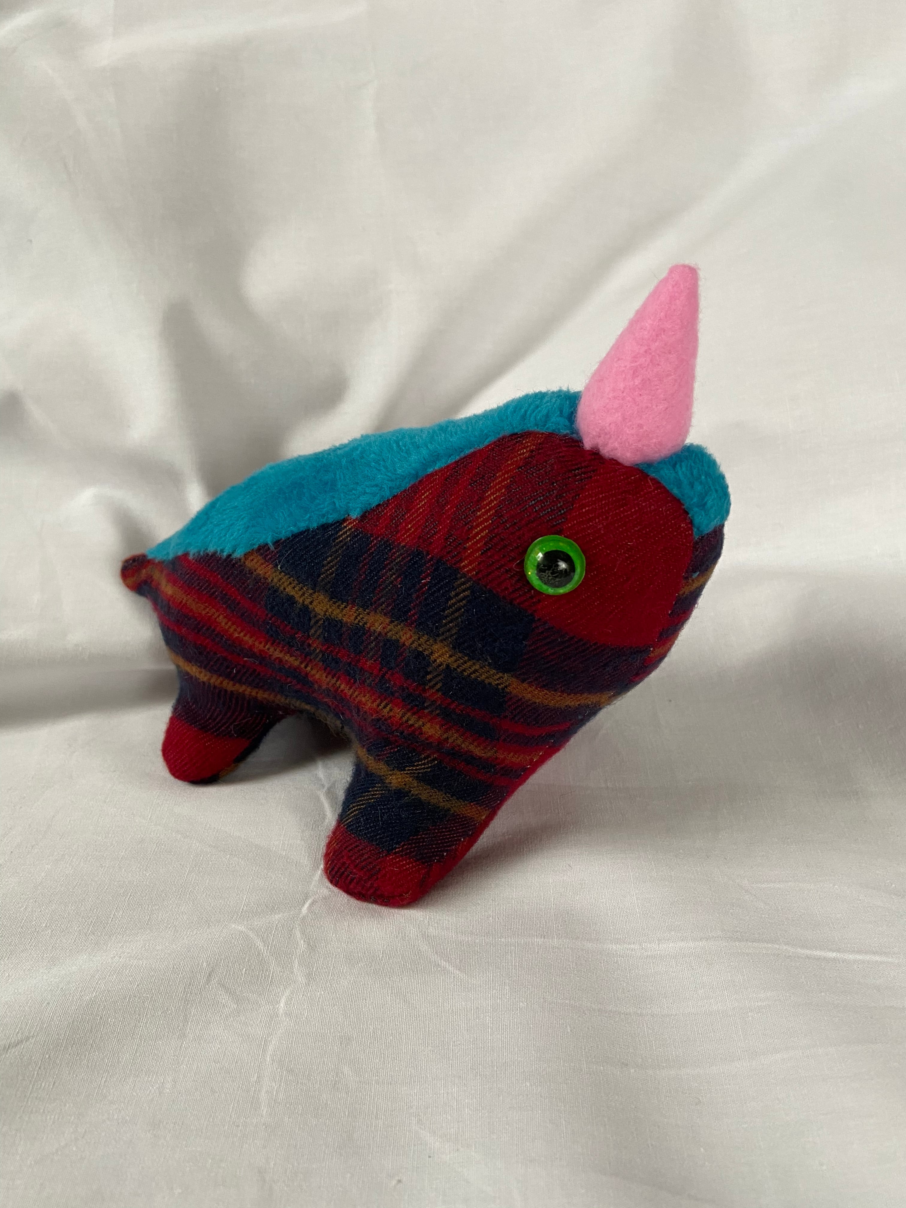 人気のもっちりちゃんです。赤いチェックのボディーが目にも鮮やかですね。ピンクのツノ!!