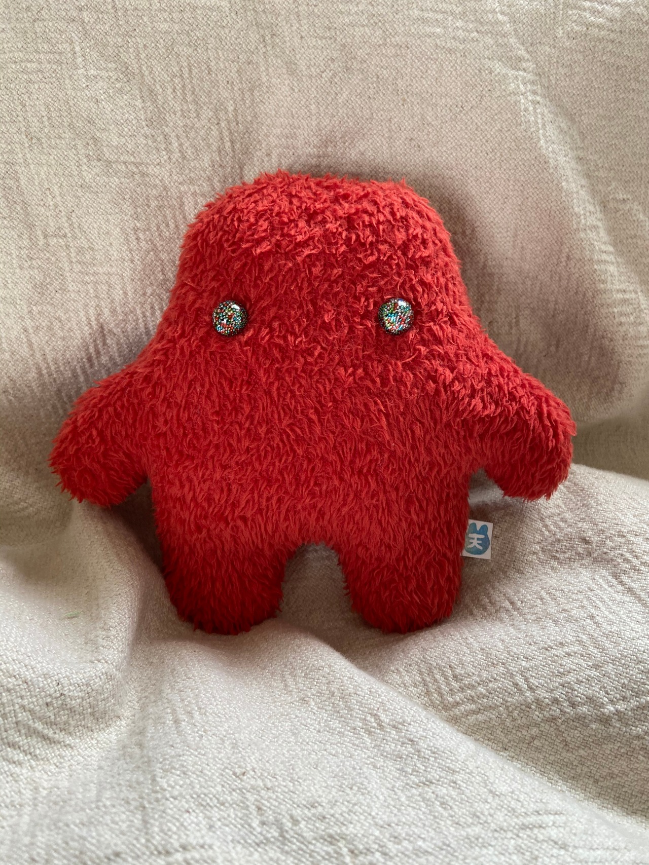 真っ赤なボディのモケモケちゃんです!ギラギラの目とゆるいフォルムがチャームポイント!!