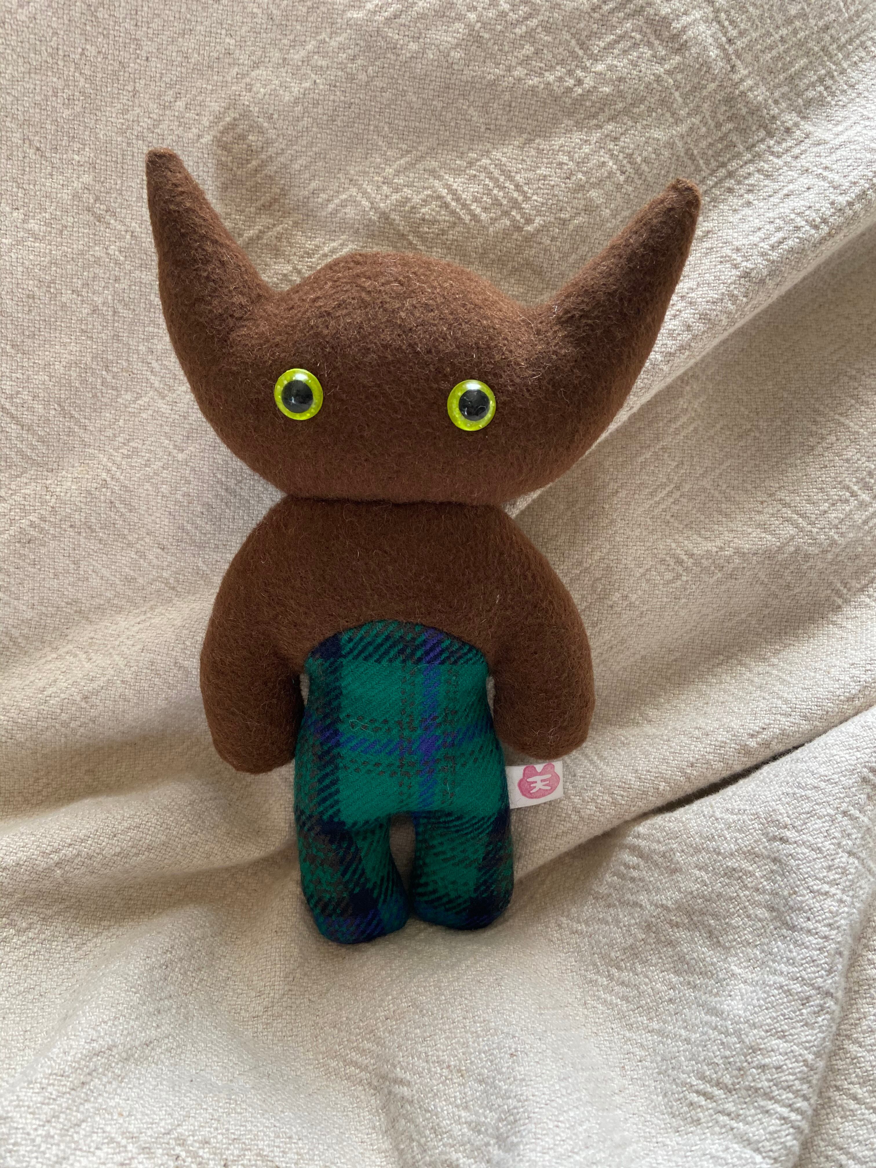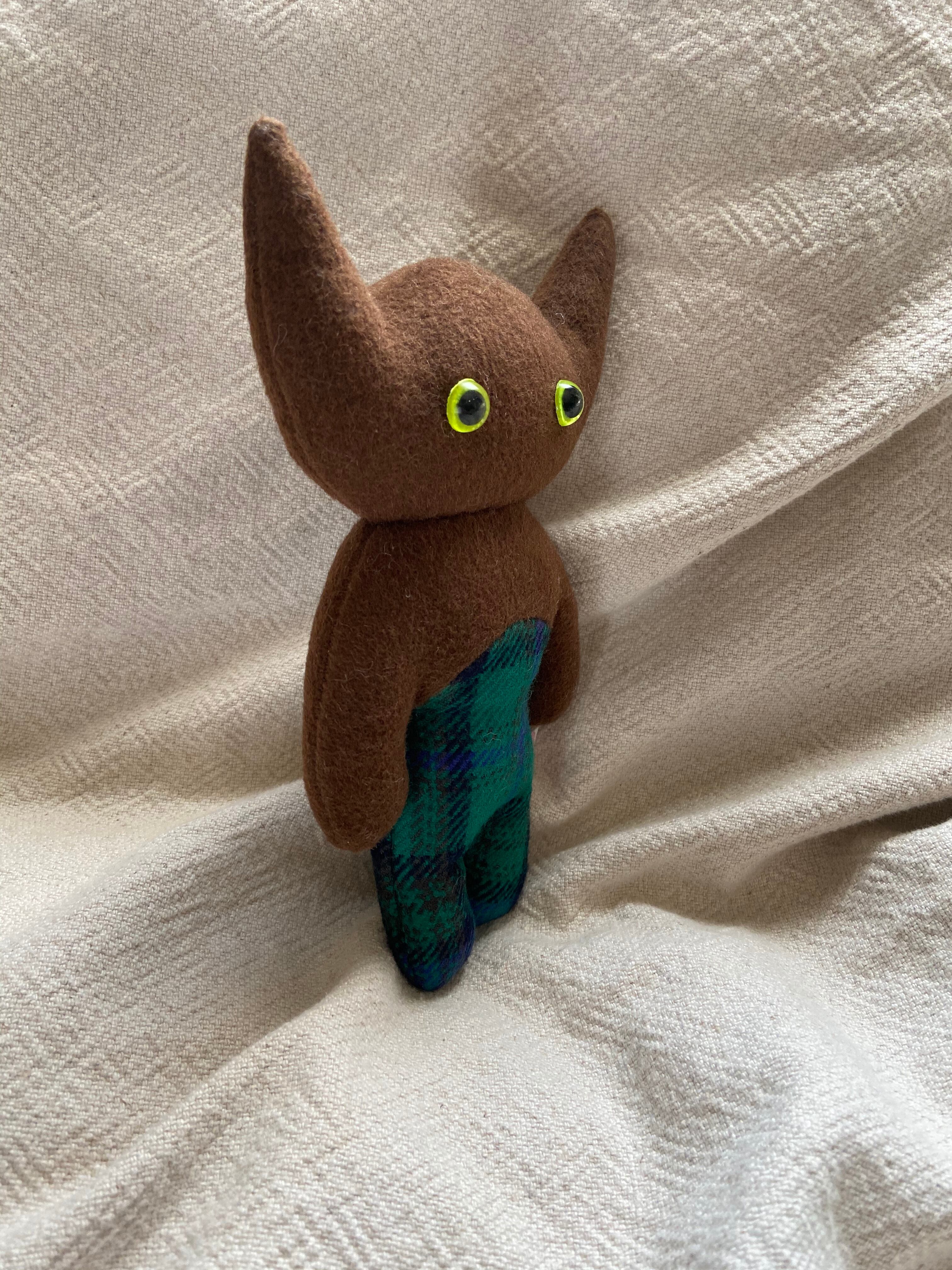 なんとなく小首かしげてるように見えるあざといぬいちゃんです。ズボンのチェック柄もオシャレ