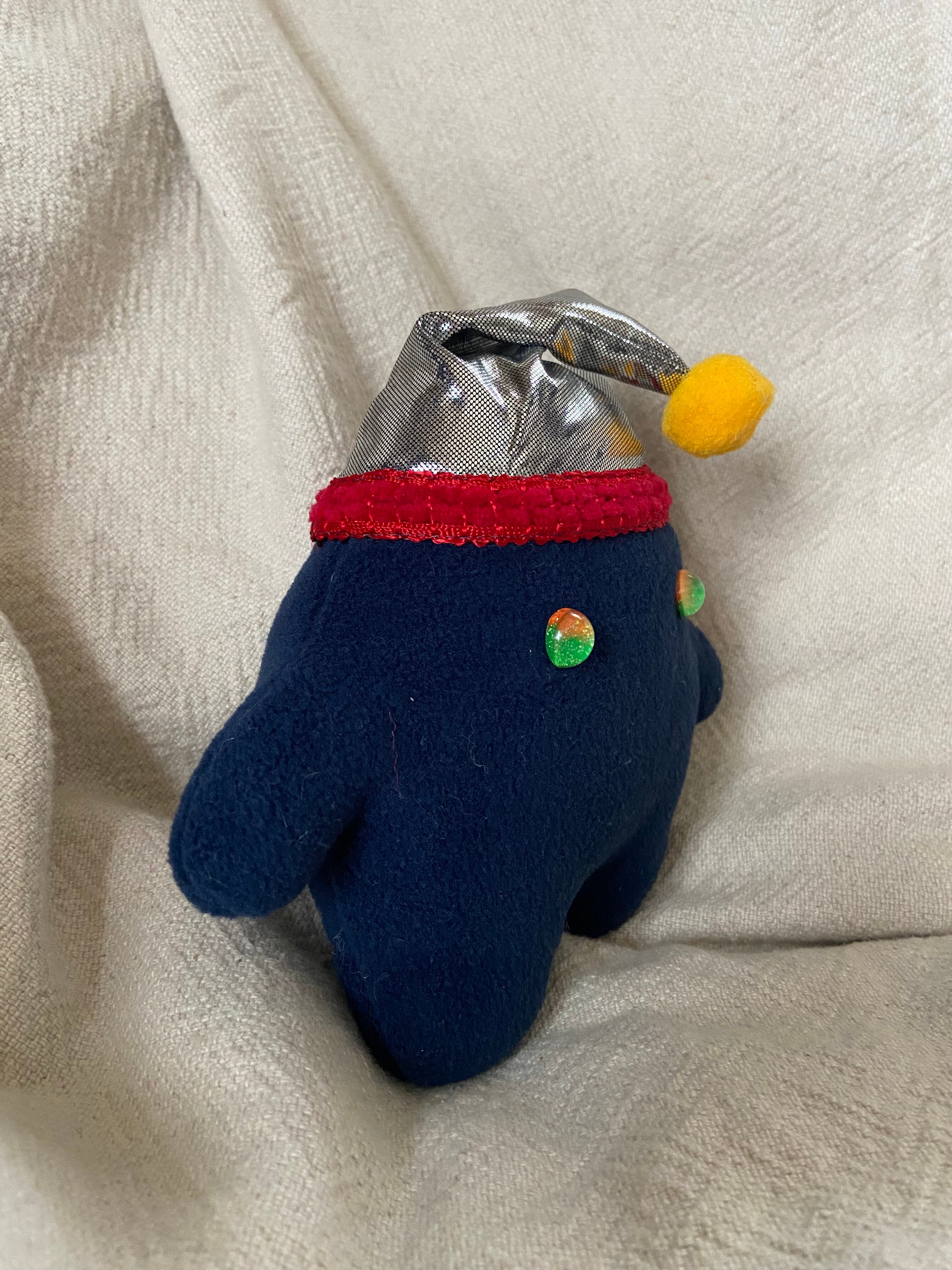 パーティーも終盤、という感じのぬいちゃんです。銀色のお洒落な帽子を被ってます。