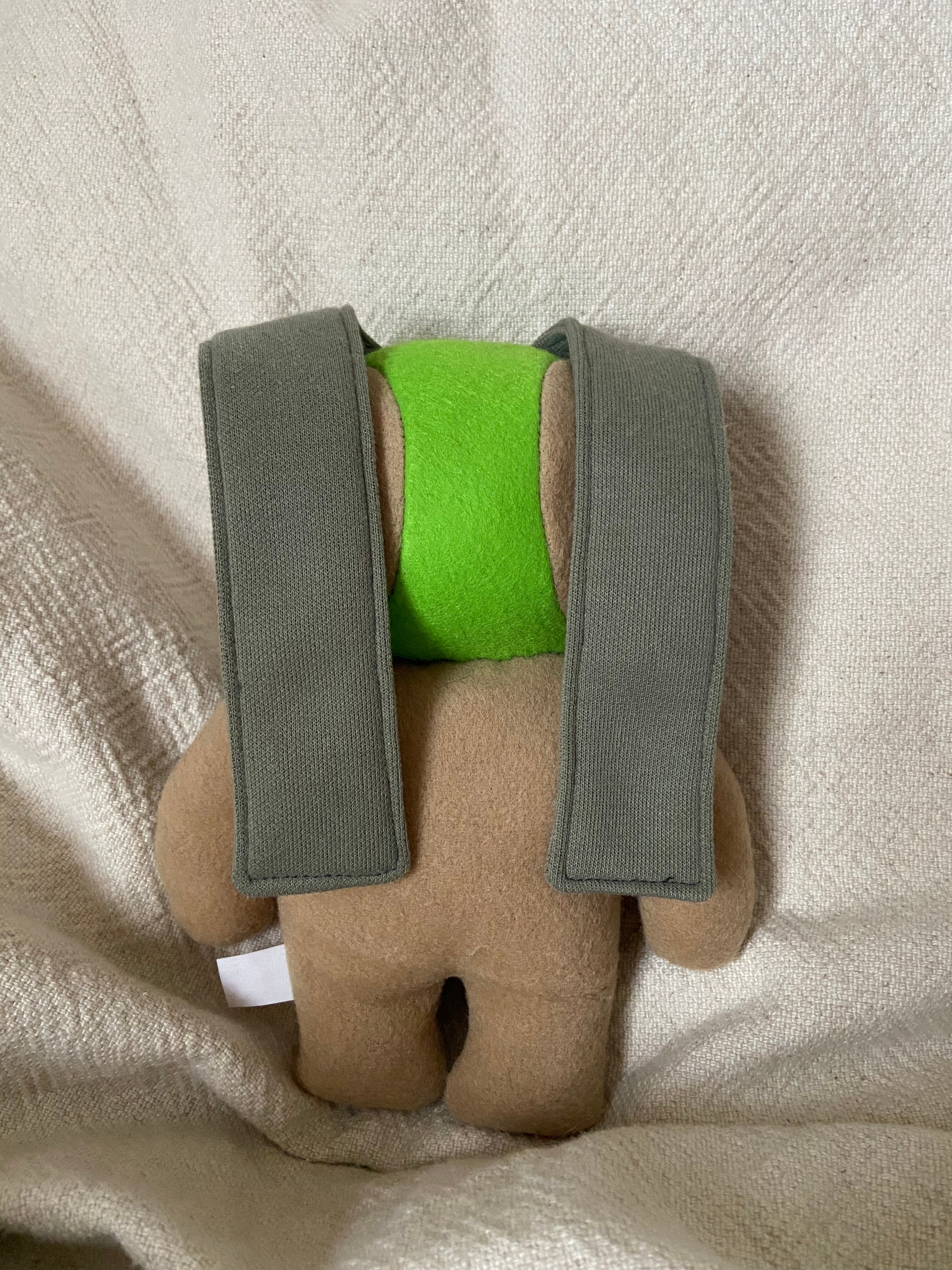 ペラペラの長い耳が付いてます。覆面レスラーに似てますよね。長い耳を色々形変えて遊ぼう!