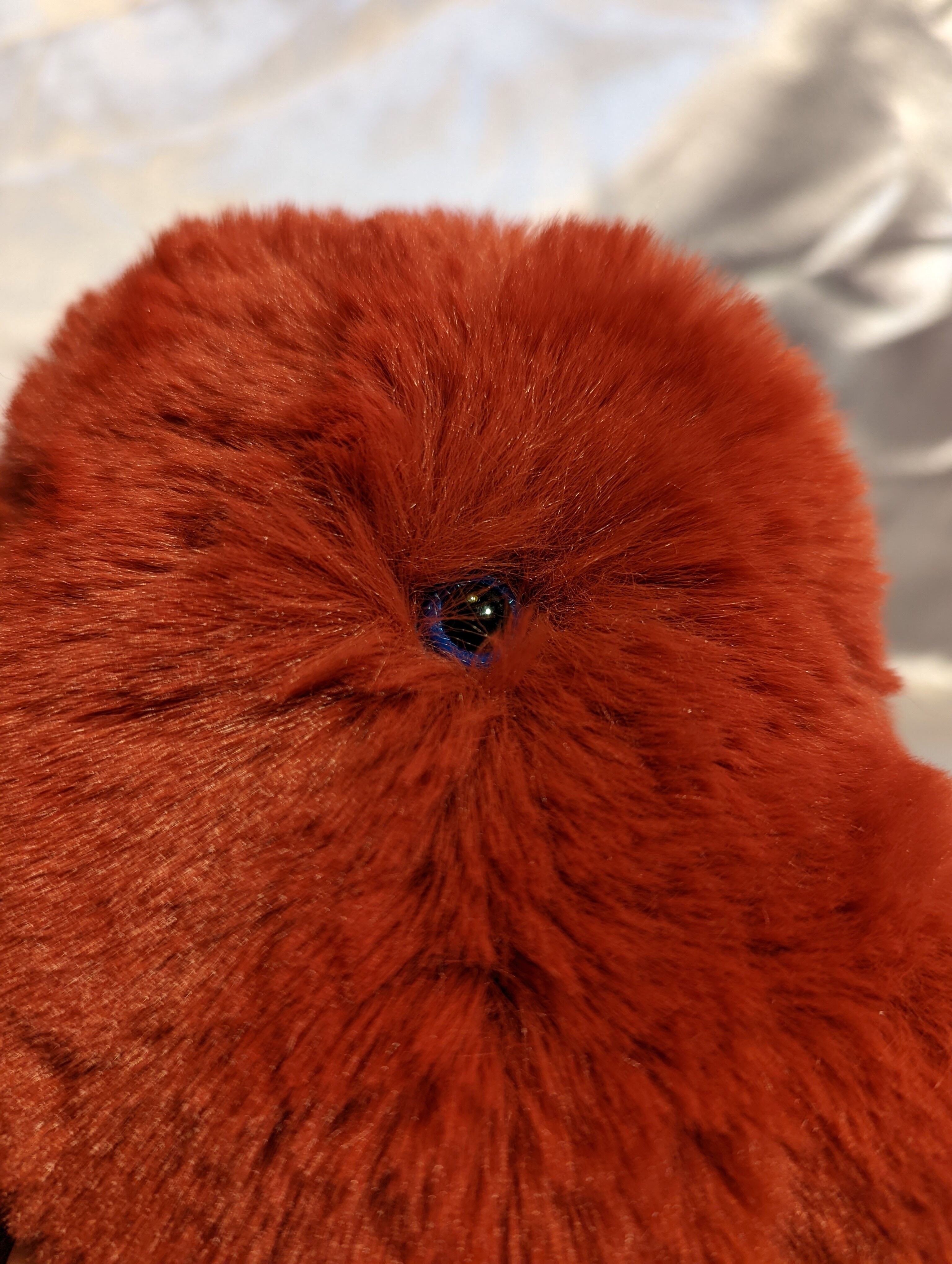 言わずと知れた「ぬい天」を代表するぬいモケモケちゃんです。やや褪せた色の赤い長毛ファーで見た目にも暖かそうな子です。目は埋没気味、、、