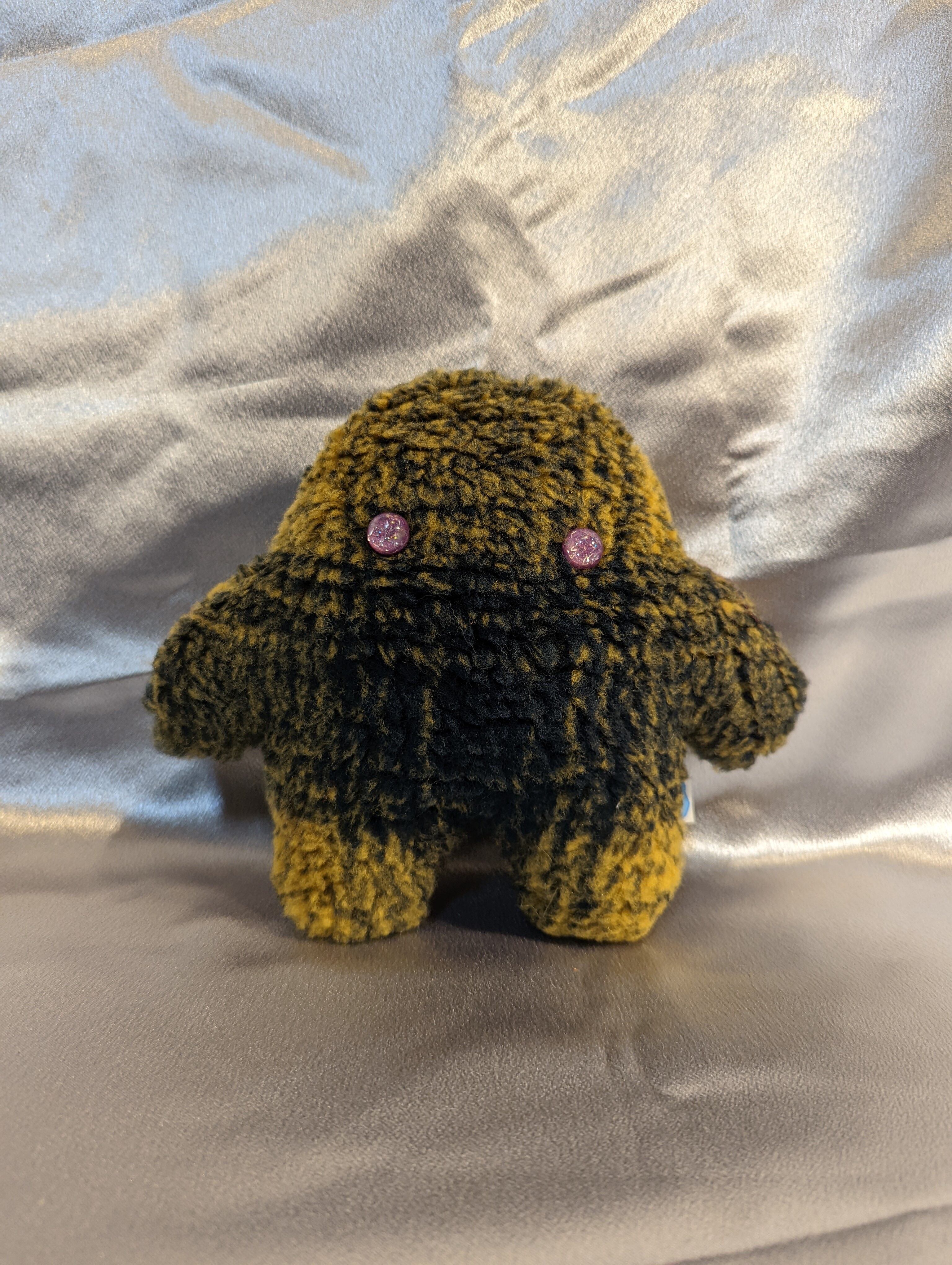 黄色いグラデーションのチェックが珍しいモケモケちゃん。なんとなく穏やかな表情をしております。目とボディの色のバランスがグッド!