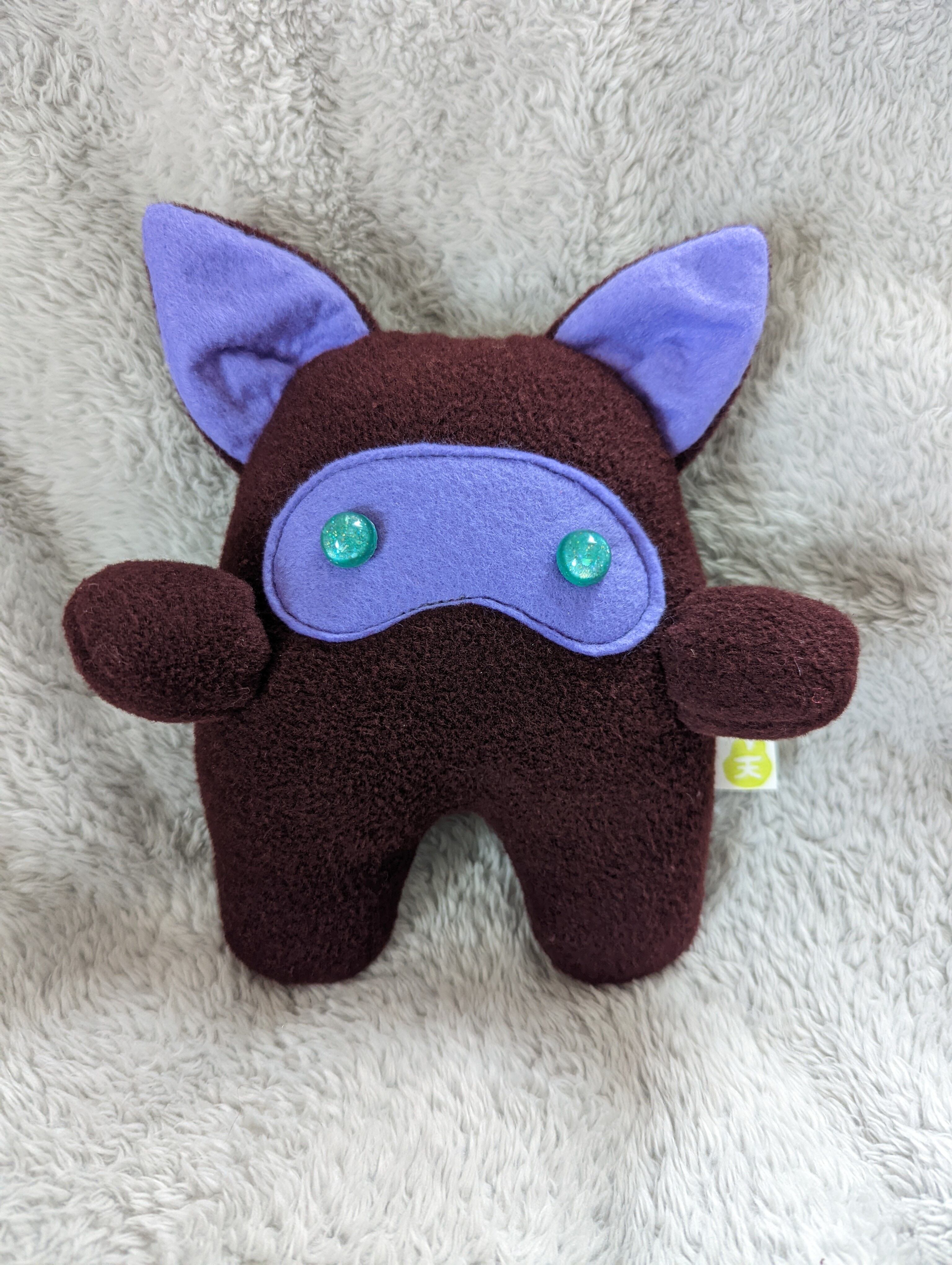 伝説のUMA「ヒバゴン」をモチーフにしたぬいちゃんです。暗い褐色のボディにパープルが鮮やかです。