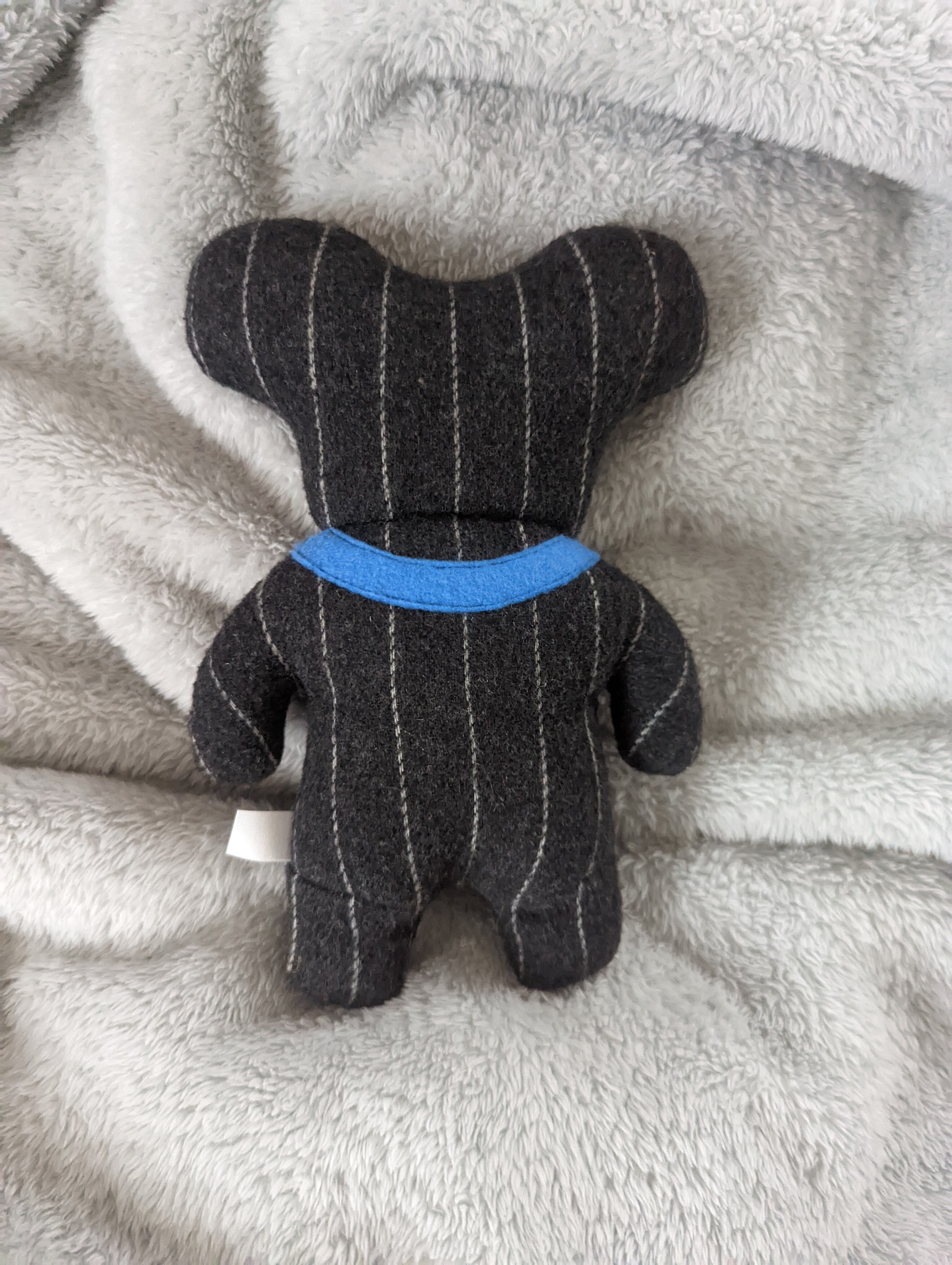 二つ頭の宇宙人ちゃん。シックな色合いが、ドレスコードのある場でも合わせやすいと思います。ジャケットからチラリとぬいを覗かせたりしてみて下さい。
