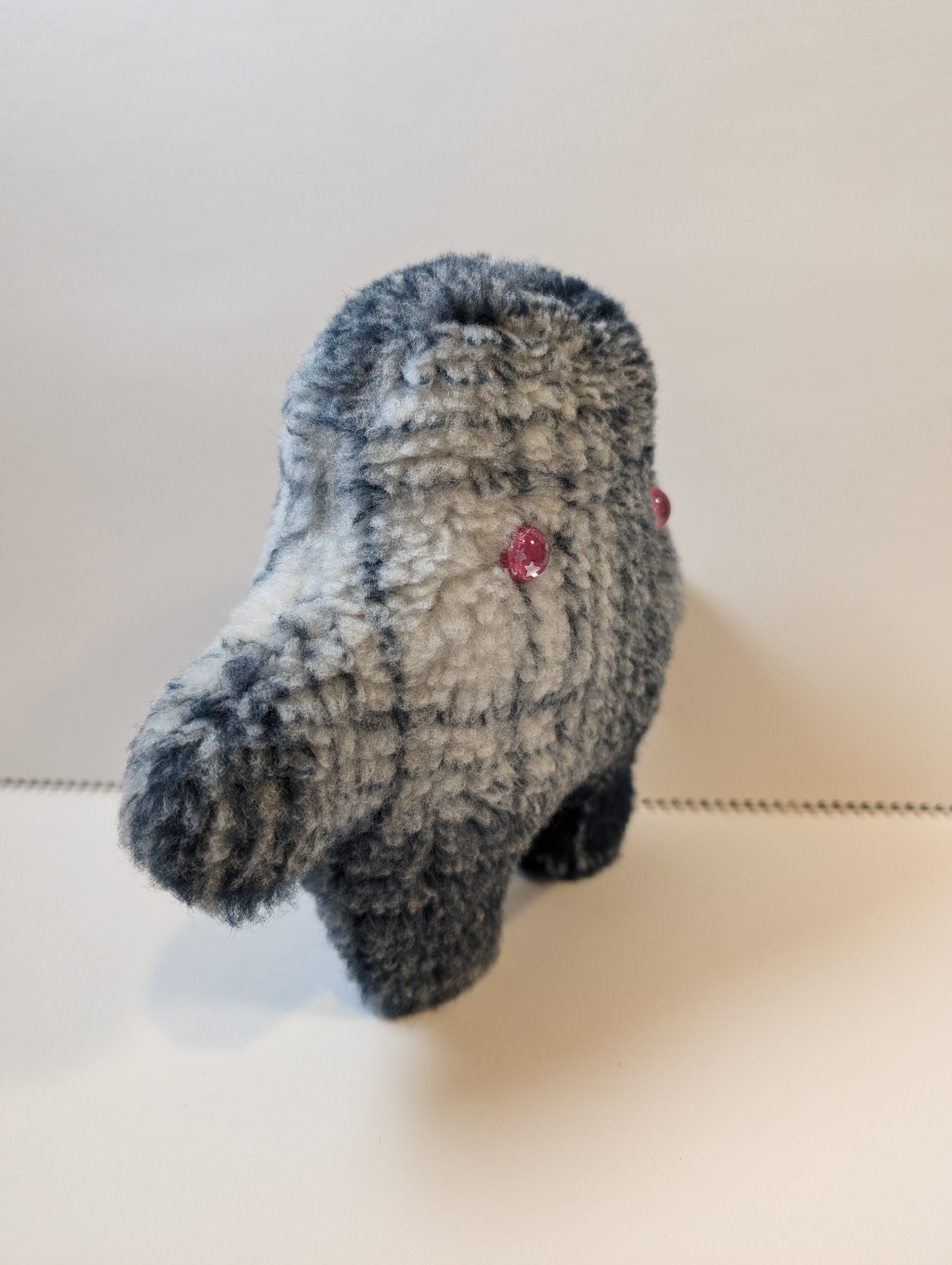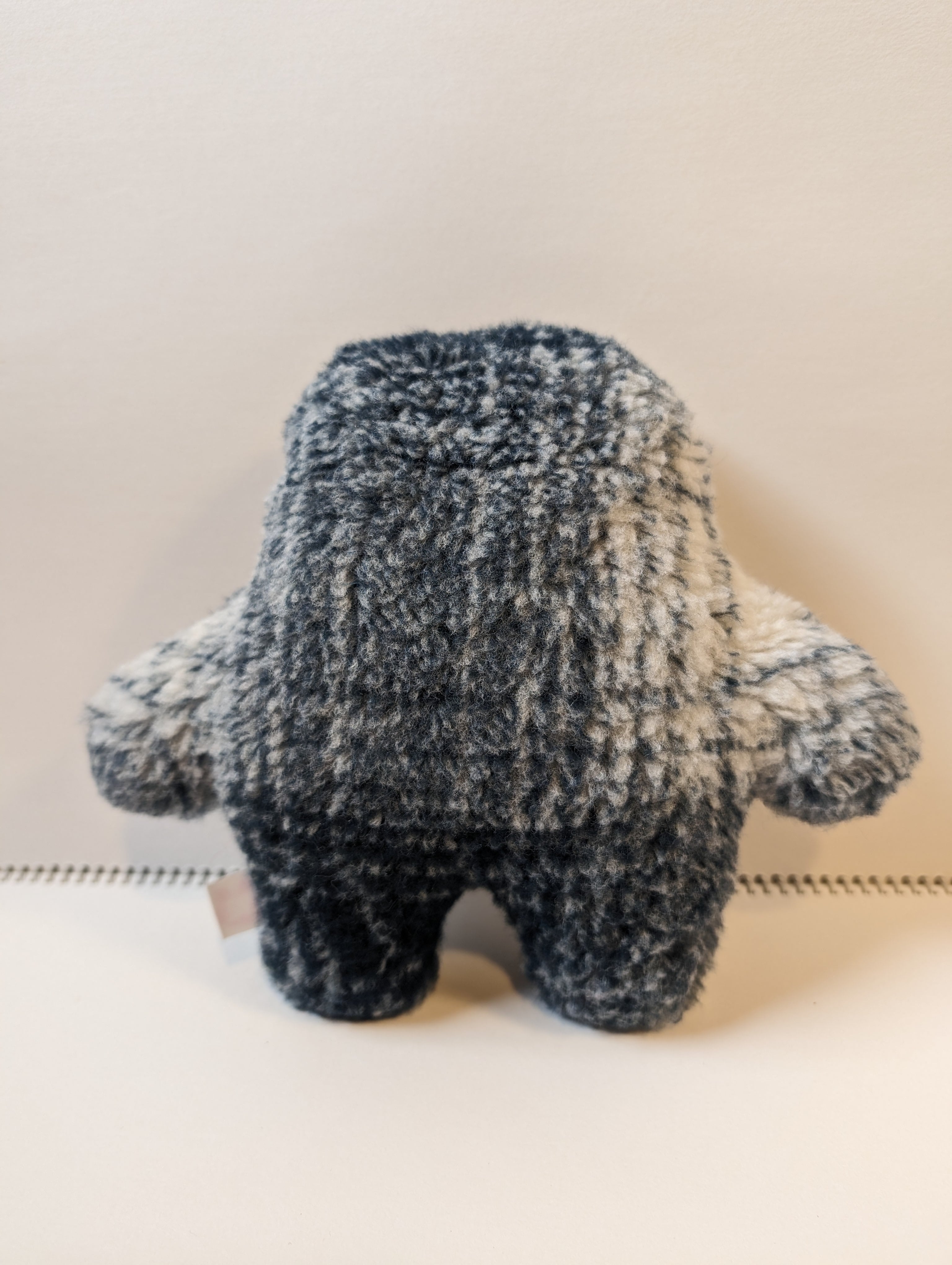 チェックのファーがお洒落なモケちゃんです。はんぺんみたいな幅広の見た目が可愛いですね。